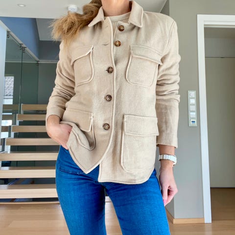 Helt nydelig drakt fra Sand som dessverre er blitt for liten. Ull og silke. 39 cm i livet. Passer en M-L