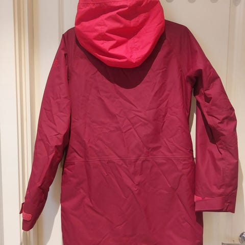 Veldig fin og foret skall-jakke som er varm og tåler mye vann. Den passer til nesten all bruk og er helt super om vinteren. Jakken er praktisk med refleks på forsiden og mange lommer. Fargen er marineblå med lilla hette og grønne glidelåser.