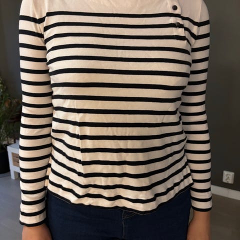 Fin og lett genser fra By Malene Birger med svart/grått mønster. Passer s-m. Den er i fin stand.
