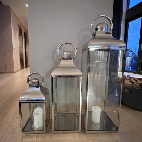 Selger et sett med 2 lykter med kube stearinlys.