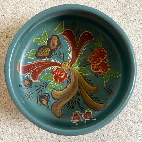 Nydelig håndmalt bolle, veldig liten. Kun 2,5 cm høy og 6 cm i diameter