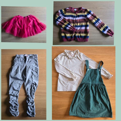 ⭐ skjørt 5 stk + 1 vest, klesspakke str 130-140