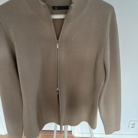 Jakken har ikke knapper el. men lukkes med hempe i halsen.