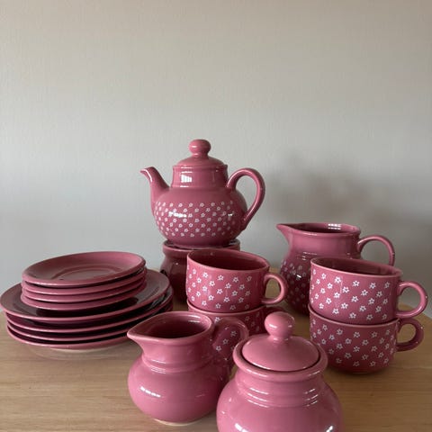 Service er godt brukt med normal slitasje. Brunt med hvite prikker.