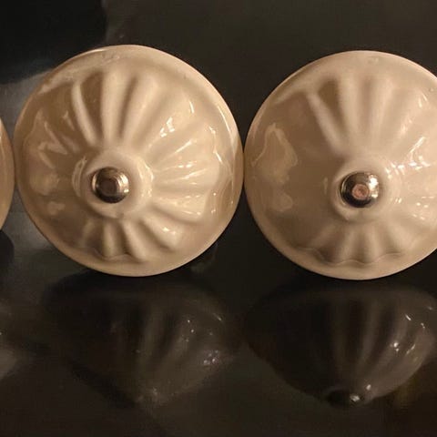11 knotter av porselen til kommode selges samlet kr 150. Nypris 440 kr.