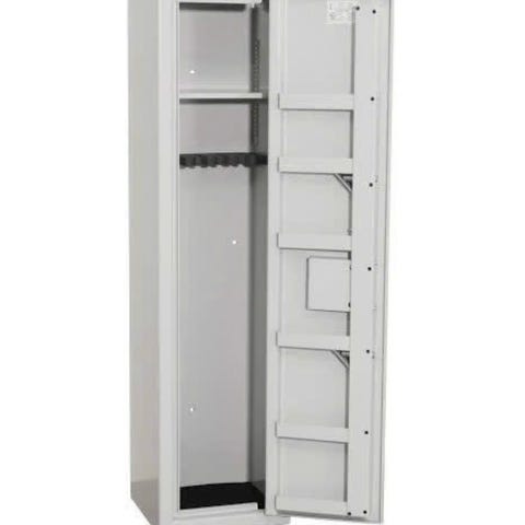 Ett meget innholdsrikt FG-godkjent våpenskap med nøkkellås og sidehylleinnsats. Det er våpenholder for inntil 8 våpen(10 hvis sidehylleinnsats ikke monteres mulig med 16 ved kjøp av ekstra løpsholder ),nøkkelkroklist og 1 topphylle . Ekstra lagringsplass med 5 oppbevaringsrom i døren. Skapet har en vekt på 152 kg som innebærer at det ikke er noe lovpålagt krav til fastbolting.