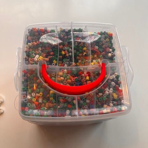 Selger dette skrinet med diverse perler ved eventuell interesse, gi bud.