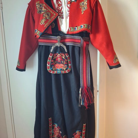 Nydelig cape og sølvspenne til blå Nordlandsbunad. Ingen feil eller mangler. Strl. M.