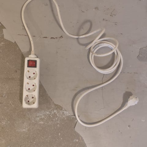 Sort bryter, uåpnet-enkel stikkontakt, uåpnet-kabel ca. 2 meter. Trekke rør ca 2-3 meter.