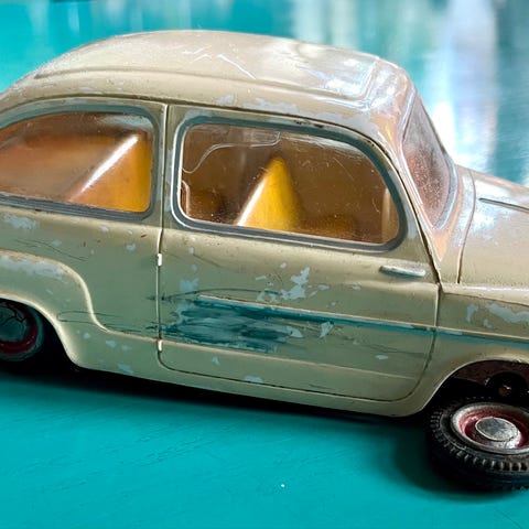 Vintage Renault 16 plastikk bil. Ikke Tomte Lærdal eller Galanite. Jeg mener dette er et produkt fra Vest Tyskland. Lengde 9 cm. Se bilder for beskrivelse.