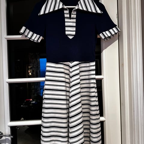 Vintage sommerkjole fra 1960-tallet. Blå blomstrete. Nydelig fasong. I halsen er sømmen gått opp, må syes litt der, se bilde.