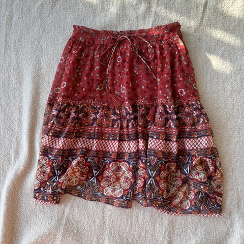 Vintage skjørt fra 1960-tallet. Rødt med hvite broderier.