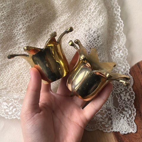 2 vintage lysestaker fra OK & Co. Germany porselen + en liten rose kurv.