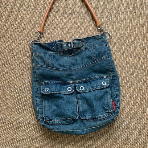 Røff denimveske wornstyle. Selges kr.80,- inkl. frakt.