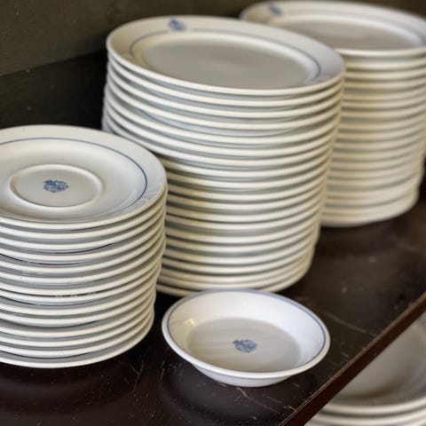 Selger to pene og eldre kopper / krus i porselen med motiv og logo,