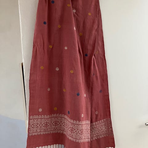 Helt nytt skjerf kjøpt i Thailand. Merket med 100% cashmere, men kan ikke garantere at det stemmer😊. Det er uansett svært mykt og i nydelige farger.