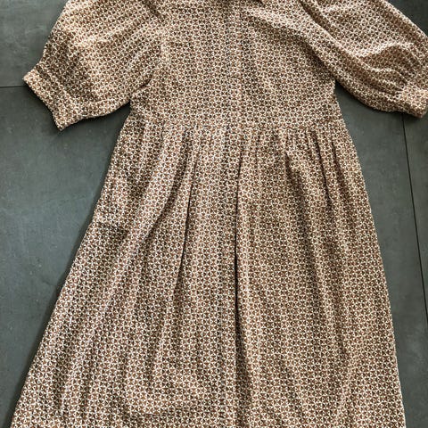 Nydelig kjole fra Second Female i str M. Blomstermønster i blå, sort og orange. Sort for. Knapper foran. Fine detaljer. Ingen flekker eller skader. Ser veldig fin ut.