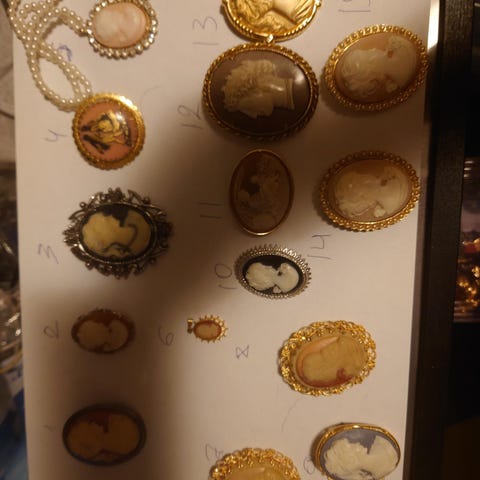 Inkluderer halskjede med anheng, ring, øredobber, og armbånd.