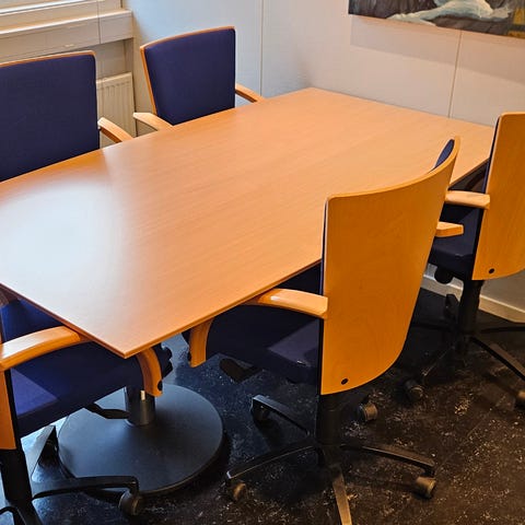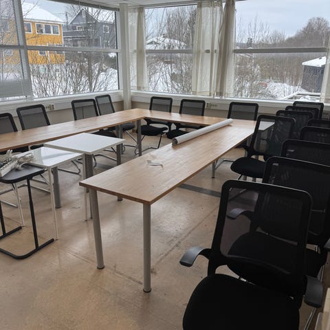 6-manns kantinebord tilgjengelige – totalt 6 bord. Pris per bord: 1 000 kroner.