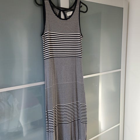 Kjempefin lang kjole fra Pulz Jeans i str M - normal i str, kun brukt 1 gang(ble feil str). Striper i mørk blå og lys grå. Splitt i ene sidenNypris kr. 599,-