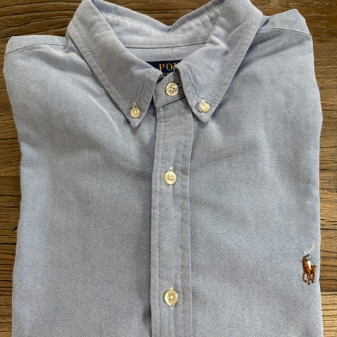 Pent brukt Polo Ralph Lauren Oxford skjorte selges. Lyseblå str. M. Slim fit.