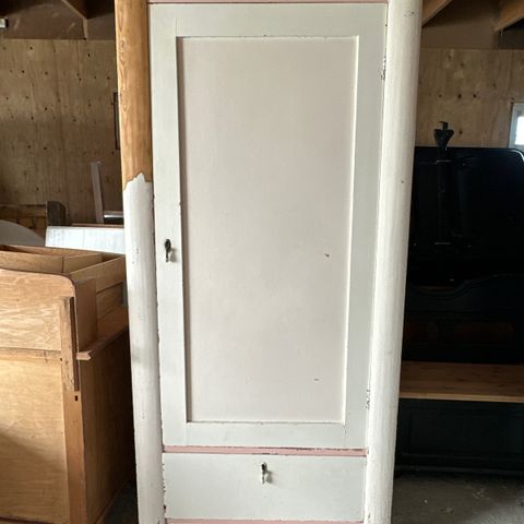 Kjempefin skjenk / vitrineskap i tre. 2 m høyt, 1,5 m bredt og 0,5 m dypt (sånn ca). To glassdører, tre skuffer og tre skapdører. Veldig god plass og i veldig god stand