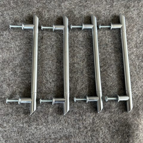 9 store håndtak og 4 små m/ skruer,helt nytt , ny pris for de store 99kr hver, selge for 30kr hver, de små ny priser 69kr hver selge for 25kr hver.