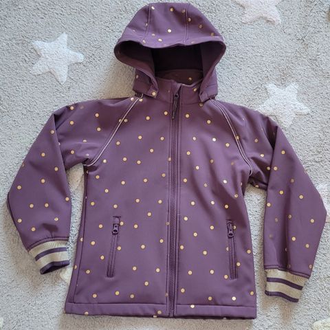 Kjempefin softshell jakke fra Name it str 128 (8 år) selges 350 kr. Lilla med gull prikker. Nypris 600 kr. Lite brukt, som ny. Fra røyk og dyrefritt hjem. Kan hentes eller sendes.