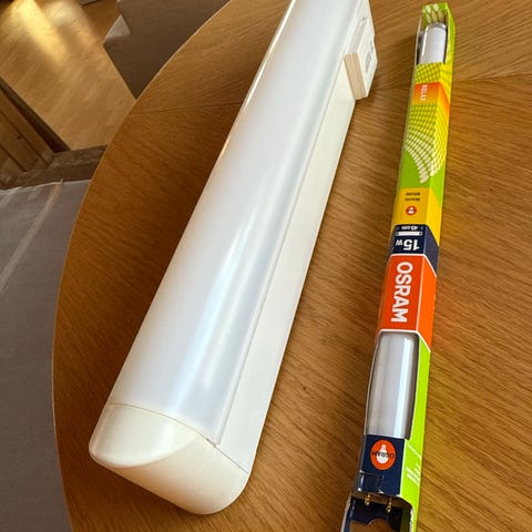 Denne er aldri brukt men har ett synlig skår på ene siden som heldigvis ikke påvirker pære. mhp funksjon og holdbarhet