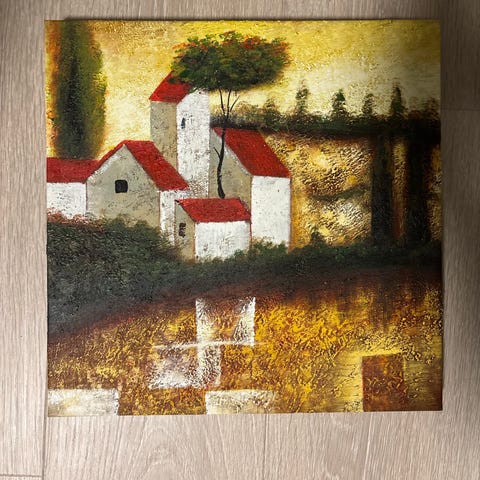 vurd. solgt. Olje på lerret. Rammemål: H: 59,5 cm. + B: 69,5 cm. Fin ornament ramme.
