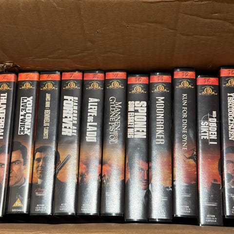 8 stykk James bond vhs filmer selges 300kr+porto. Kan også sende uten fiks ferdig. Se også mine andere annonser.