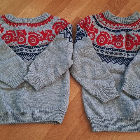 Pent brukt strikket marius traktorgenser i ca. Str. 2-4 år. Brukt 1-2 ganger. Strikket i merinoull