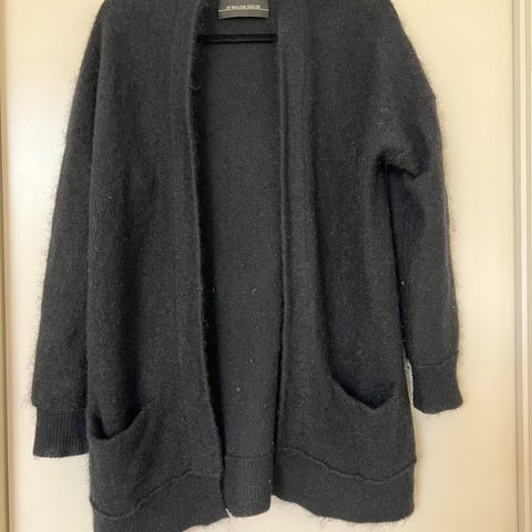Selected femme cardigan i svart. Består blant annet av 39% ull og 20% alpakka. Selges billig fordi den har noen nupper, som nok enkelt kan tas bort med nuppefjerner.