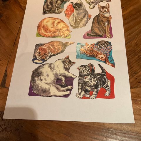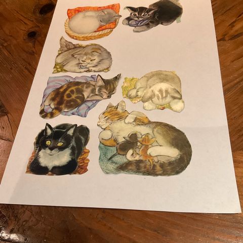 Motiv av katter. De henger ikke sammen og har ikke vært limt, kun ligget i en perm. Kom gjerne med bud. Komplett serie. Kan lage egen avtale med kjøper. Sender også som brevpost,