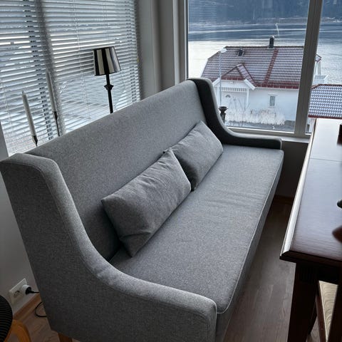 Utrolig deilig å sitte i da den er så romslig. Selges på grunn av flytting. Usikker på designer siden vi kjøpte den via Finn.