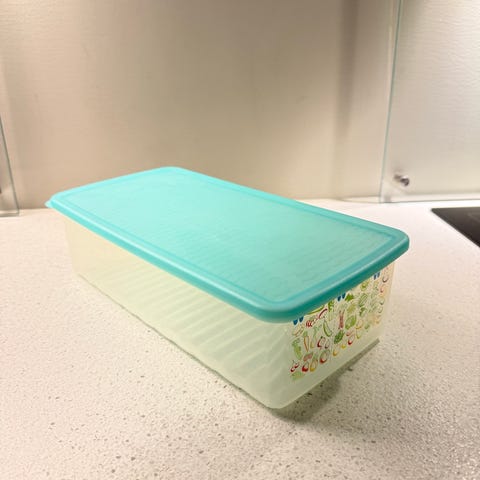 Boks med riller og ventilasjon som gjør at frukt og grønt holder seg mye bedre og lenger i kjøleskapet. Denne str er perfekt til gulrot-men også alt annet som passer oppi. Tåler oppvaskmaskin.