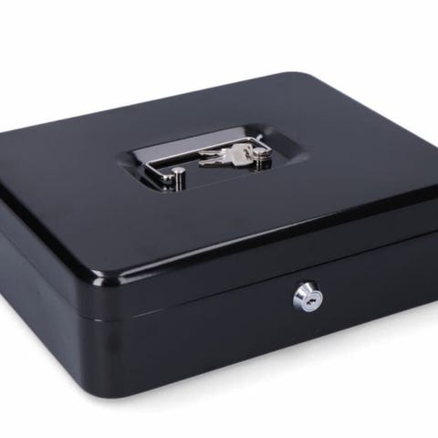 Låsbar kontantkasse med myntbrett