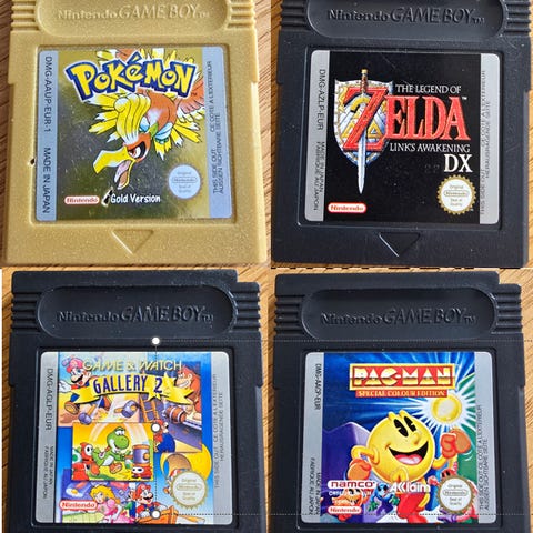 Selger diverse spill til første generasjon Nintendo Gameboy.