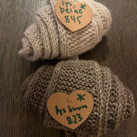 Hetten er strikket i Drops Big Merino 100 % merinoull og hals/skulderparti i ulike Mohair garn.