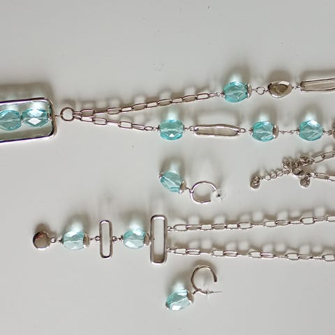 Flott smykke sett. Vintage.Smykke sett var kjøpt i Spania (på grense med Frankrike)mange år siden .Håndlaget .Veldig lite brukt .Metall (alltid fin farge)perler, emalje.