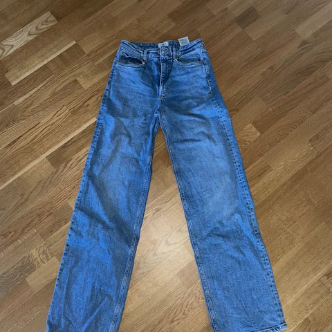 Jeans fra Only i størrelsen W28 L32. Buksen har høy midje med kule knappedetaljer. Pent brukt.
