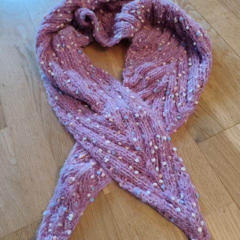 Rosa sjal i mykt garn, muligens ull.