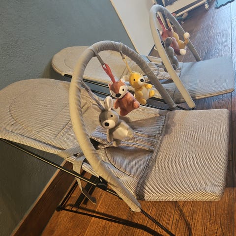 Vi selger vår vippestol fra Babybjörn i mørk grå/ antrasitt, superpopulær leke/rangle følger med. Den er pent brukt til et barn og trekket tas enkelt av og kan vaskes på 60 grader. Selges nyvasket og klar til bruk :)