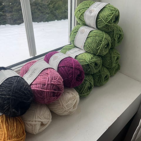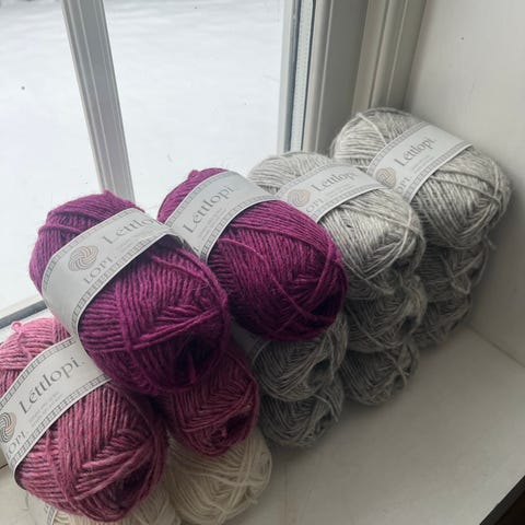 Restegarnet er 18g, og kan selges med det hele garnet for 15kr.
