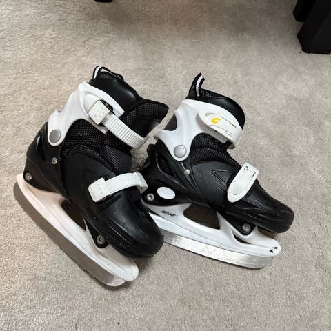 Skøyter som kan reguleres mellom 35 og 38. Brukt noen få ganger. Selges mot henting kr 200
