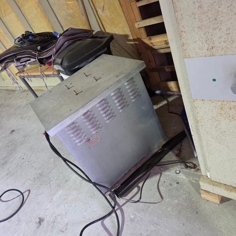 Trafo 230v-400v 35kva/400v-230v 30kva. Os transformator fabrikk Norge .Vekt 280kg.Lengde 124cm,Bredde 34cm,Høyde 56cm