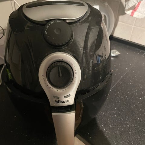 Tristar Airfryer i svart farge. Denne enheten er ideell for sunnere matlaging ved å bruke varmluftsteknologi. Med justerbare innstillinger kan du enkelt tilberede ulike matretter. Perfekt for daglig bruk på kjøkkenet.