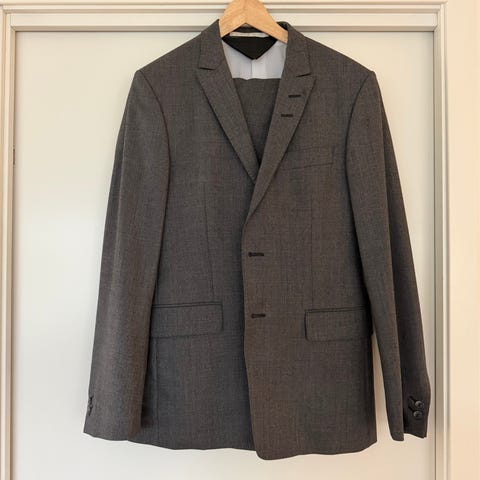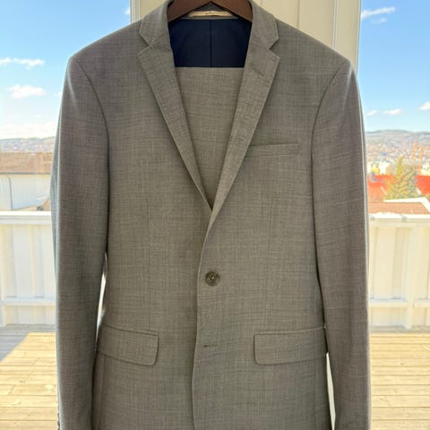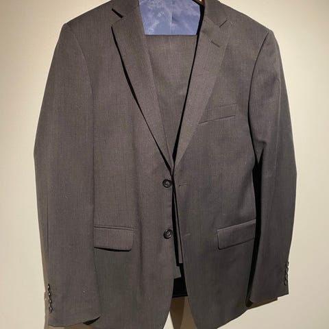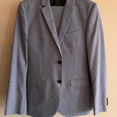 Pent brukt konfirmasjonsdress. Fargen er blå/gra og kommer ikke til sin rett på bildene. Fremstår ubrukt.