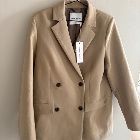 Say hello to your key to style! The Debby Jacket by Samsoe & Samsoe features a lapel neckline, mock pockets, a double breasted button design, a trendy oversized fit, wool blend material, a houndstooth check pattern, and smooth lining. Style this blazer open with black tailored trousers, a cool tee, and black open toed heels!