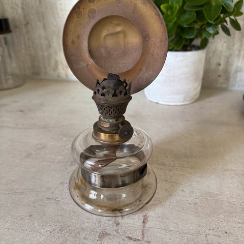 Sjarmerende oljelampe/parafinlampe selges. Merket med fregatten jylland, se bilde.